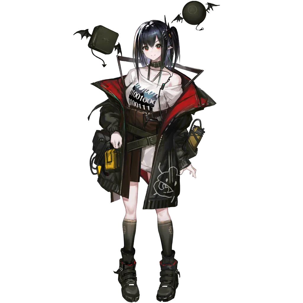 元バベル組織メンバー(テレジアにより直接スカウト)。ロドス・アイランド艦船総エンジニア兼工程部部長兼調達部責任者であり、ハードウェア・ソフトウェア両面のシステムメンテナンスにおいて卓越した能力を発揮する。サルカズの血魔だが、源石技艺の才能は極めて乏しい。時折イタズラを好む。権限レベル:42、ケルシーと緊密な関係を持つ。傍らに浮遊するキューブは端末「Lambda」。メインストーリー残陽篇ではアーミヤ、ドクター一行と共にロンディニウムへ向かう。メインストーリー裂変篇では活性化したPRTSとロドス・アイランド艦船の危機に際し、未完成の臨時戦闘システム「零号油罐」(Zero Order Oil Tank)を強制起動し、戦闘通信システムを確保した。